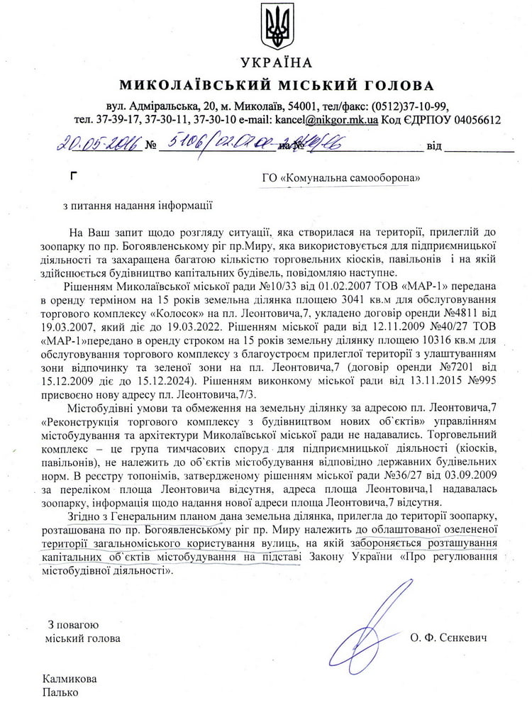 У громадських активістів, що борються за відновлення соціальної справедливості та проти розбазарювання земель міста на догоду скоробагатькам, є цікавий лист за підписом міського голови.