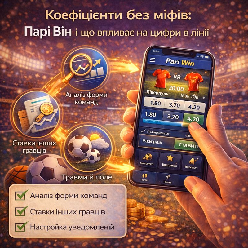 Коефіцієнт — це не віра, а ціна оцінки, в яку закладена маржа. Лінія рухається від новин, грошей і часу, а лайв додає миттєву реакцію на події. Парівін у цьому контексті читається як ринок із правилами, де цифри мають причину. Коли бачиш причину, міфи розсипаються самі.
