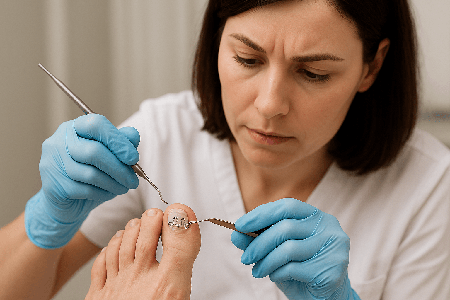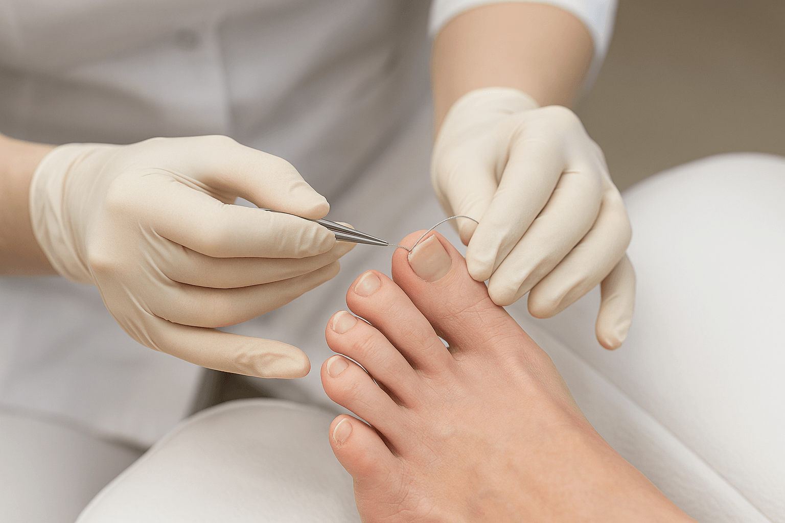 Саме ця технологія допомагає одночасно лікувати й не порушувати звичний ритм життя клієнта. Титанова нитка гнучка, міцна, не викликає алергії та ідеально підходить навіть дітям або людям з діабетом. Завдяки правильному встановленню нігтьова пластина вирівнюється поступово, без болю і без рецидивів. І найголовніше — пацієнт відчуває полегшення вже з першого дня.