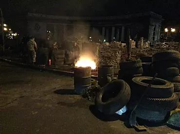 «3дecь coбpaлиcь люди из Caмooбopoны Maйдaнa, пepeдoвaя Гpyшeвcкoгo. 3aжгли двe пoкpышки, oни гopят в бoчкe.