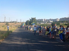Более тысячи жителей Мариуполя сформировали живую цепь на блокпосту со стороны выезда из города в направлении Новоазовска.