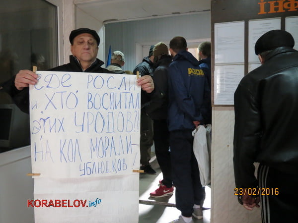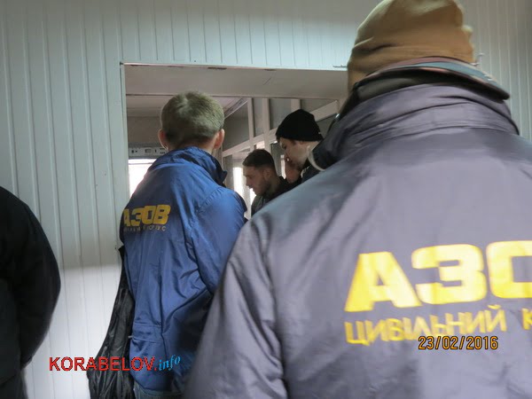 Перед началом заседания, кроме журналистов, родственников и адвокатов обвиняемых, собрались человек 20 (более 10-ти из них – активисты гражданского корпуса «АЗОВ»), поддерживающих сторону обвинения и желающих присутствовать на суде.