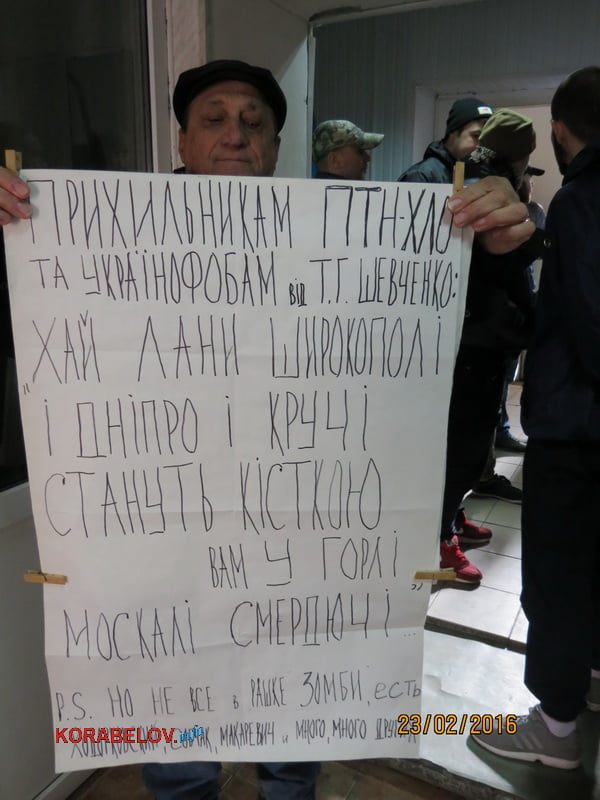 «А это — так бы сказал им Шевченко сегодня, если бы был жив», — прокомментировал мужчина, продемонстрировав и вторую сторону плаката:
