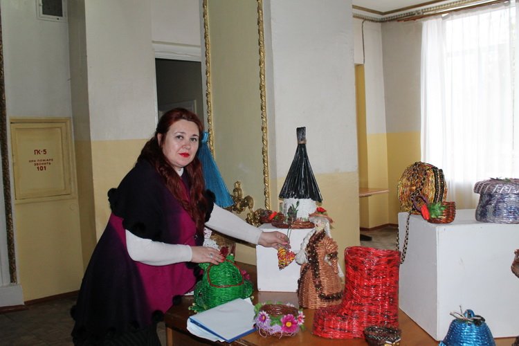 Також у фойє ПК Людмила Вікторівна представила усім персональну виставку робіт із лозоплетіння.