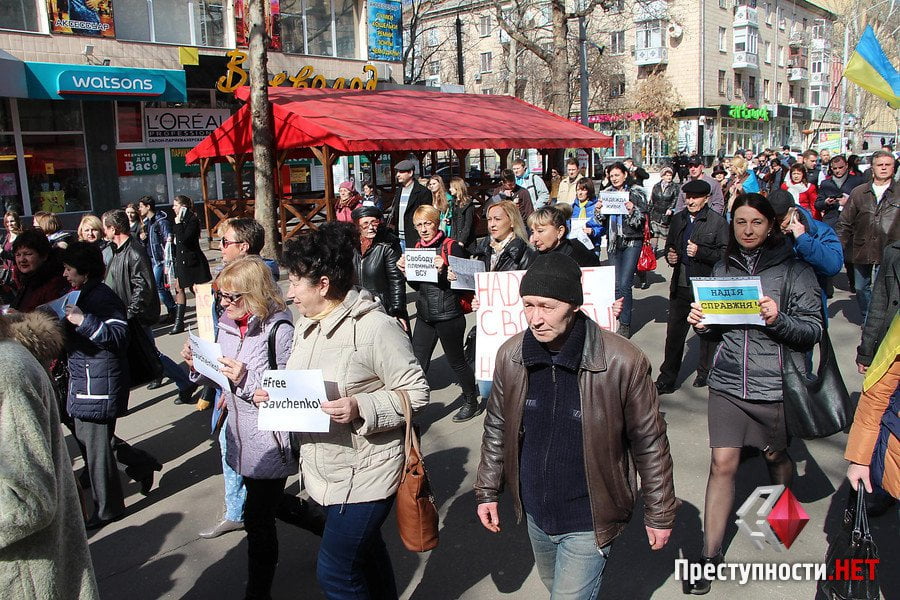 В среду, 9 марта, жители Николаева вышли на митинг в поддержку Надежды Савченко. Об этом сообщает  «Преступности.НЕТ».