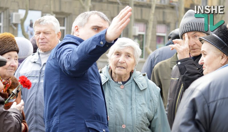 Проходивший мимо мэр Николаева Александр Сенкевич решил пообщаться с электоратом и получил свой урок истории. Так, собравшиеся были возмущены тем, что их якобы не пускают к мемориалу для возложения цветов проукраински настроенные молодые люди (бойцы «Азова», волонтеры из Николаевской ОГА и общественники действительно не расходились и с интересом наблюдали за собравшимися пенсионерами – ред.).