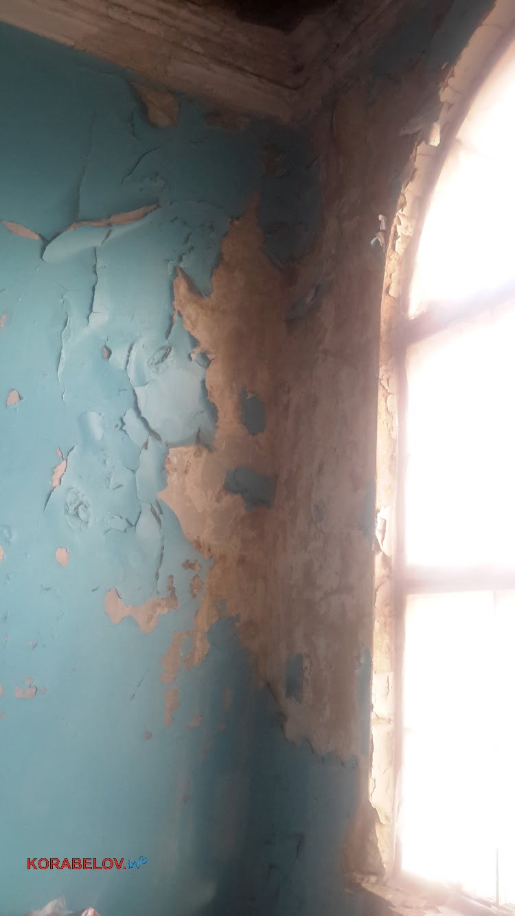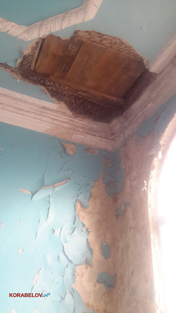 — Раньше здесь крыша протекала, а когда отремонтировали ее, влага перестала поступать. И окна мы поменяли, влажности нет. Лепнина, видимо, начала ссыхаться, всё вздутое было… — объясняет директор ДК Алексей Чебан. — Слава Богу, в одном классе мы это предусмотрели, сами там обвалили. Там дети были, и мы начали там быстрее ремонт делать. Думали, закончим там – перейдем сюда, а оказалось…