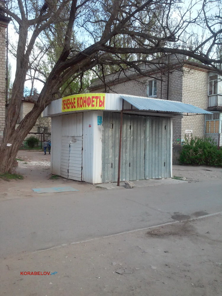 Недалеко расположен и следующий участок. Это землеотвод под киоск, который стоит на аллейке возле школы №33 (кстати, незаконно торгующие здесь «стихийщики» полностью уничтожили деревья, высаженные тут при участии профсоюза предпринимателей Корабельного района).