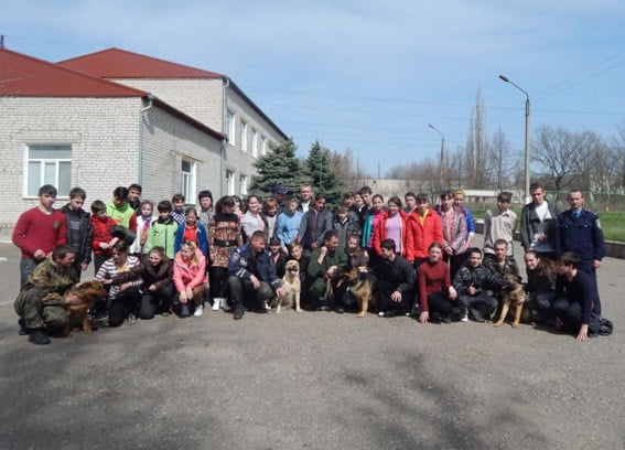 Кінологи розповіли дітям про завдання, що покладені на їх чотирилапих помічників, після чого школярі сфотографувалися на пам’ять із вихованцями Центру.