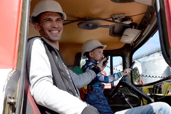 Для детей вывели технику, которая используется в порту при перевалке грузов. Она показалась им просто гигантской! А посидеть в кабине водителя вообще принесло огромное удовольствие. Подержаться за руль, посигналить или поговорить по рации пожарной машины — ребята не упускали возможности почувствовать себя взрослыми. Увидев судно, они были впечатлены его столь «не детскими» масштабами. И каждый на память сделал фотоснимок на фоне порта.