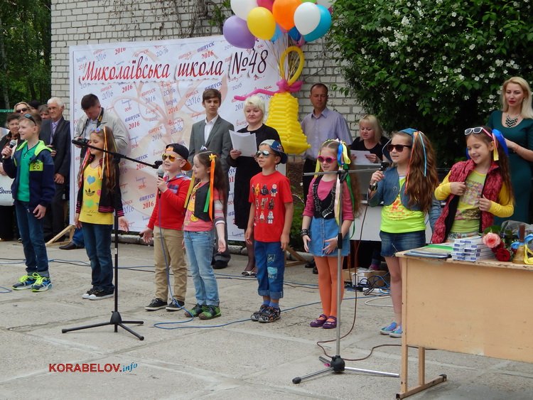 …В Николаевской школе №48 спозаранку все было готово к торжественной встрече самых главных «виновников» праздника последнего звонка: пришла пора отпустить из-под своего заботливого крыла 11-А класс. Преподавателям, конечно, немного больно «отрывать» их от себя. Ведь, казалось, они только вчера пришли в школу маленькими растерянными несмышленышами. А сегодня они — самостоятельные молодые люди, полные смелых стремлений…