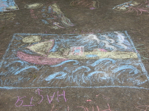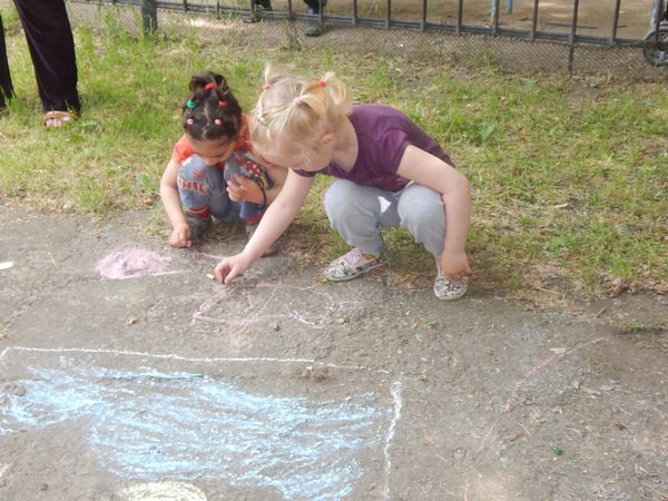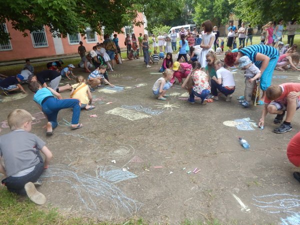 Спочатку для дітей був організован конкурс «Малюнок на асфальті», всі із задоволенням приступили до конкурсу, потім почалась розважально-ігрова программа.