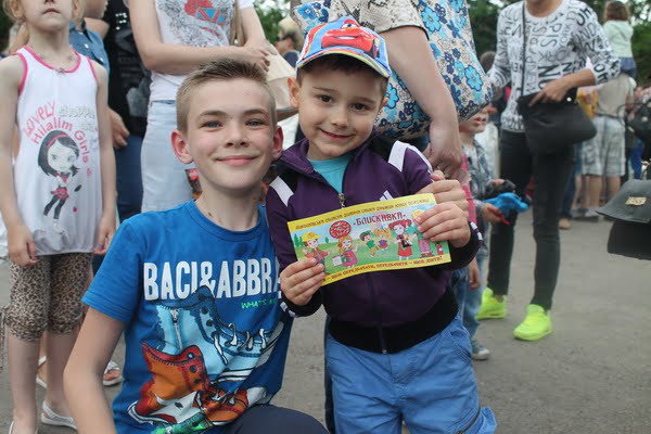 Програму розпочали аніматори, які протягом усього заходу залучали дітей до участі в конкурсах та веселих танцювальних інтерактивних іграх, що дуже сподобалися малечі. Усі, хто долучався до конкурсно-розважальної програми, отримали солодощі, смачне морозиво та подарунки: настільні дитячі розважально-розвиваючі ігри, скакалки та мильні пузирі від адміністрації Корабельного району. А ще малеча мала змогу розмалювати трішки похмурий погодній день у більш яскраву гаму кольоровою крейдою.