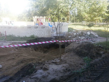 В первой половине дня в субботу, 4 июня, здесь снова работала техника: завозилась земля и яма была засыпана.