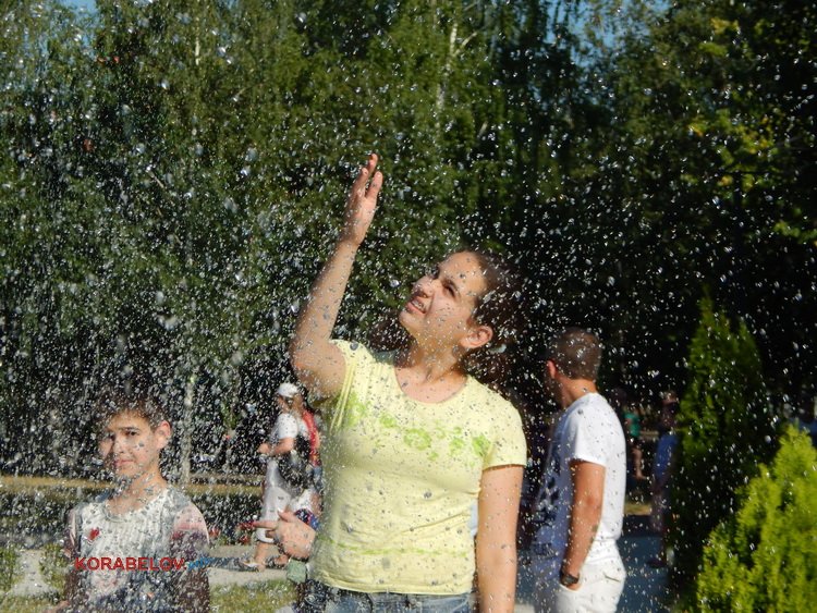До начала торжественной части жители наслаждались прохладой в тени деревьев, любуясь фонтаном (пусть и небольшим) в центре парка. Малыши, словно завороженные, смотрели на переливающиеся под лучами солнца капли воды и тянули навстречу им свои ладошки. Взрослые с неменьшим удовольствием зачерпывали воду руками и радовались ей, как дети.