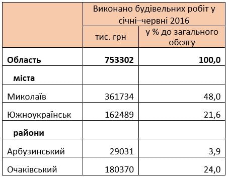 У січні–червні 2016 р. підприємствами області виконано будівельних робіт на суму 753,3 млн.грн.