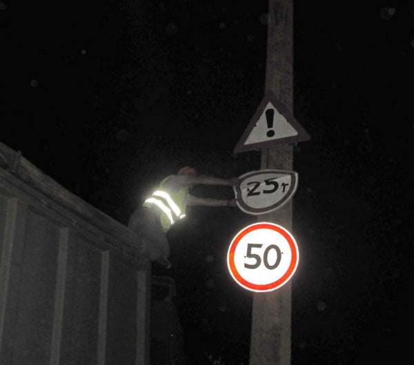 — На место был вызван экипаж полиции. Была предпринята попытка вызвать коммунальные службы, но на часах 3 ночи, и вряд ли кто-то стремглав помчится ремонтировать знак. Силами активиста — подполковника МГО МСП Police911 Ивана Булавко, и одного из водителей фур поломка знака была устранена, — цитирует издание активиста Игоря Арчибисова.