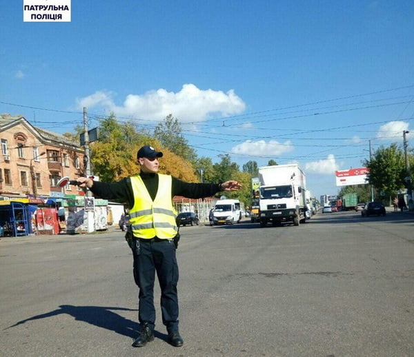 Патрульні поліцейські регулюють дорожній рух.