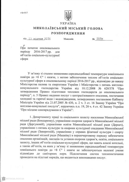 Городской голова Александр Сенкевич подписал распоряжение о начале отопительного периода  для объектов социально-культурной сферы.