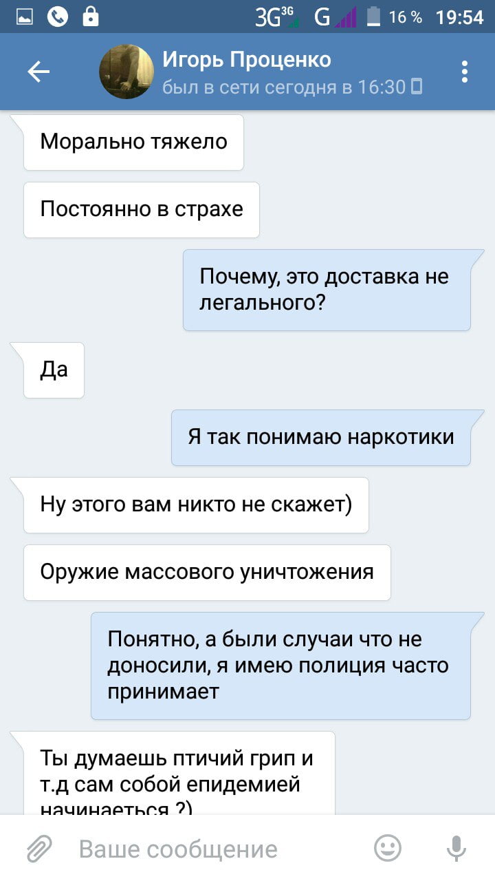 Игорь хвастает, что они уже год на рынке, а казус всего один раз был, когда их парня «подставил» сам заказчик. «Везде свои Мусора», — пишет он.