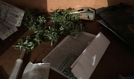 Также во время обыска было изъято шесть бумажных свертков, весом около 10 г каждый, с веществом растительного происхождения, похожим на коноплю, почти 3,5 кг марихуаны, 100 мл ангидрита уксусной кислоты и медицинские шприцы с остатками вещества коричневого цвета.