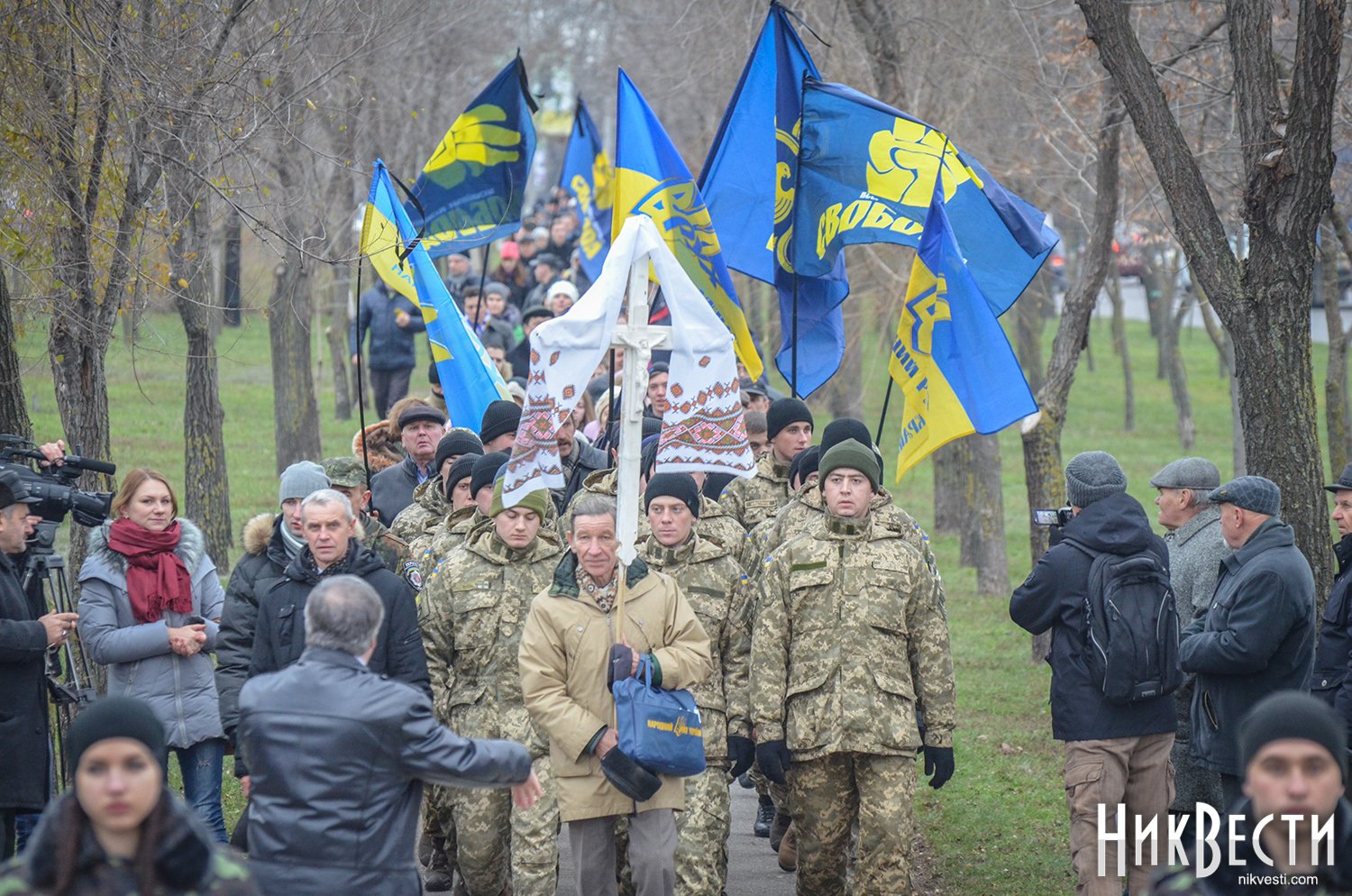 В субботу, 26 ноября, традиционно жителей Николаева и области почтили память жертв Голодомора, геноцида украинского народа, траурным шествием и возложением цветов к памятному знаку жертв Голодомора.