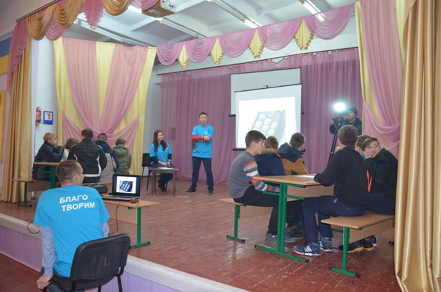 А вот команда промплощадки НГЗ «Молодежный совет», участвующая в Новогоднем марафоне «Верим в чудо, творим в чудо!», прошла первую станцию на базе школы №33 в Корабельном районе. Для ее учеников ребята подготовили интересную презентацию, в которой поделились своим опытом волонтерства, рассказали о проводимых ими благотворительных и социальных акциях.