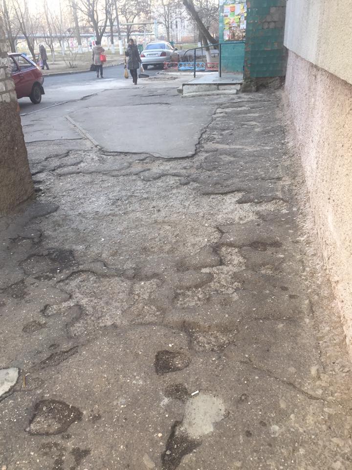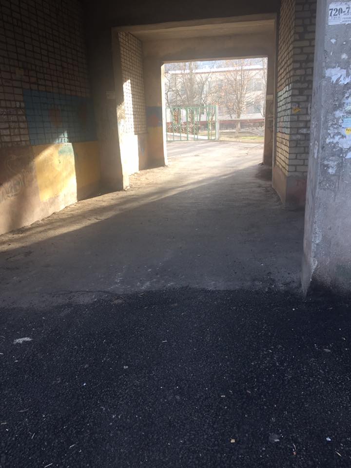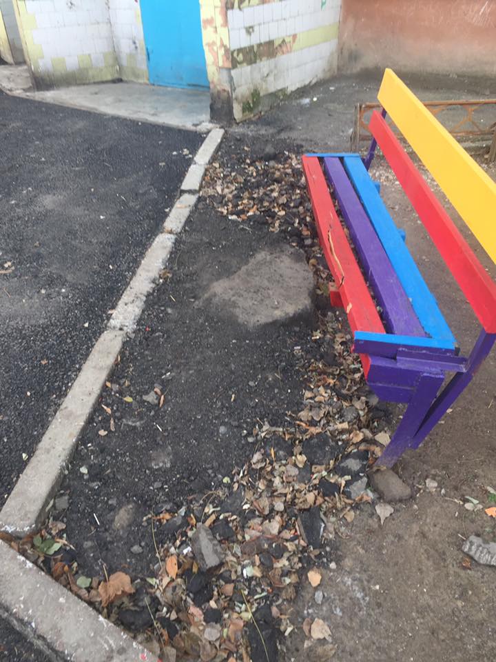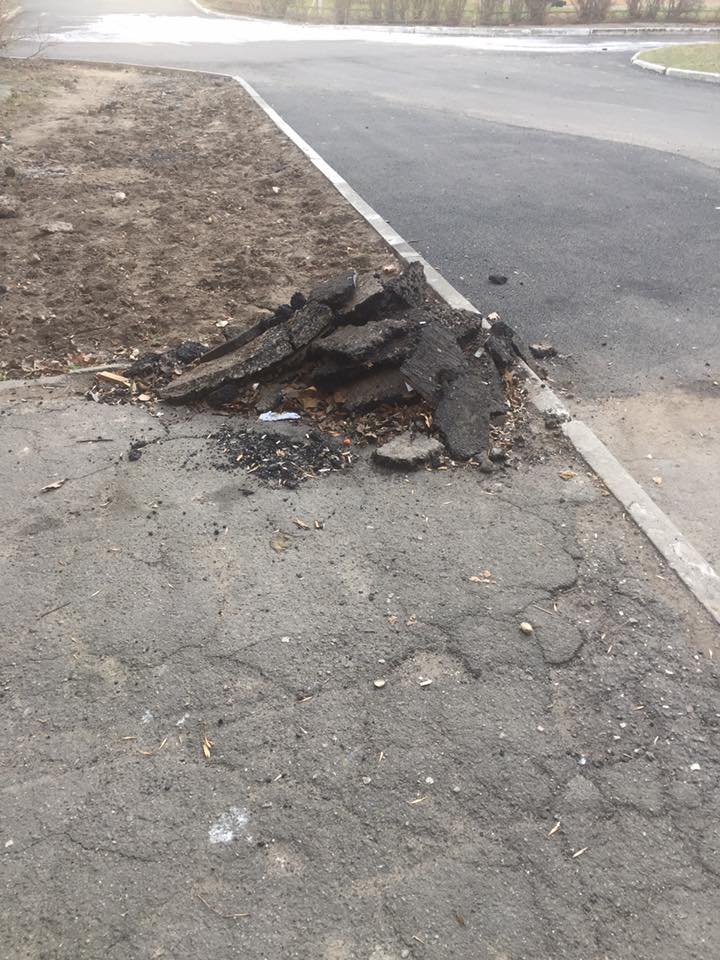 «Спионерили заборчики, сломали скамейку новую возле первого подъезда, возле этой же скамейки раздолбали нормальный асфальт, ливневую трубу возле третьего подъезда наполовину замуровали. У 4-ого и 5-ого подъездов оставили ямы. Для автомобилей есть дорога, а вот для большинства жителей пешеходная зона осталась прежней. Старого асфальта кучку оставили. Да, и знаменитая арка, через которую родители каждое утро ведут своих малышей в Детский сад. После каждого хорошего дождя там 3-4 дня стоит вода, такая себе большая лужа, которую обойти невозможно», — комментирует автор фото, сделанные после ремонта дорожного покрытия внутриквартального проезда.
