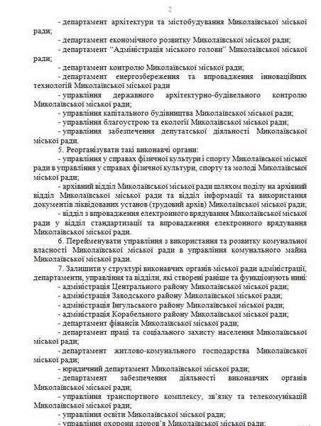 — Департамент «Администрация городского головы» Николаевского городского совета;