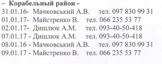 В частности, сообщаем, кто дежурит по Корабельному району: