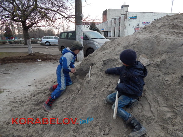 Зато нашли себе забаву мальчишки, копаясь в куче песка, что ждет своего участия в ремонте пешеходных дорожек, идущих через сквер «Белая акация».