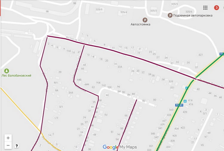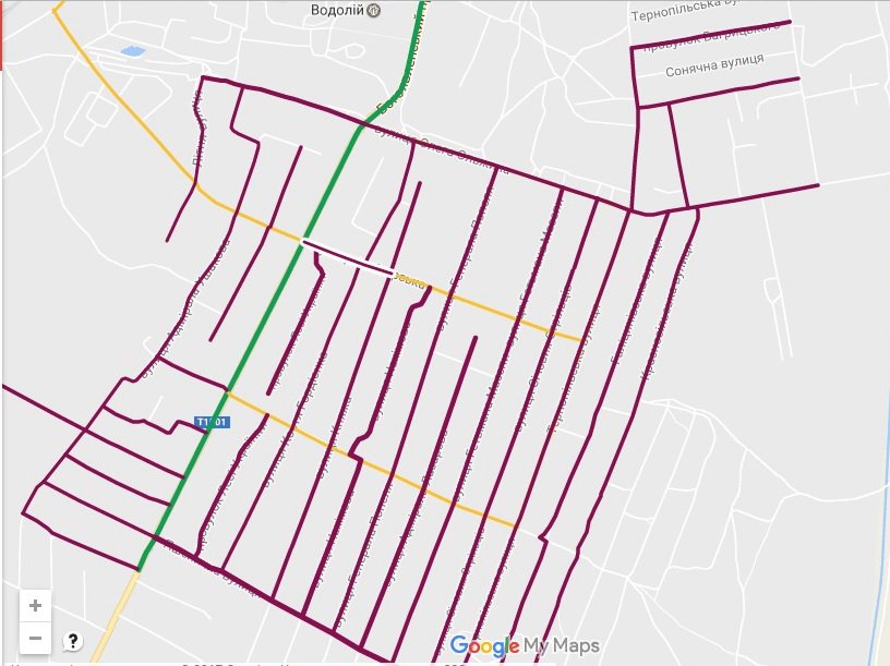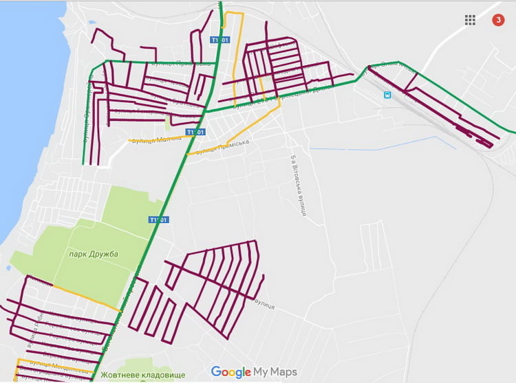 Кроме того, сиреневым цветом обозначены улицы маршрута №8, которые почистят МСП «Ника-Тера», ГП «СК «Ольвия» и КП «Обрій-ДКП»:
