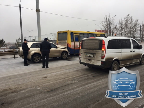 "....Из-за скользкой дороги и несоблюдения дистанции автомобиль “Suzuki” столкнулся с задней частью автобуса."