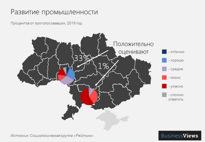 Положительно оценивают развитие промышленности в Николаевской области лишь 1% населения.
