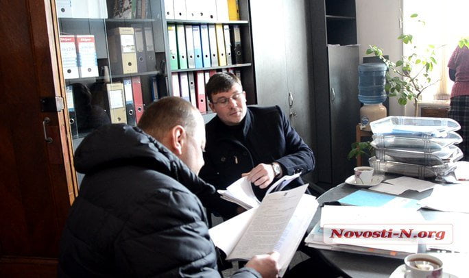 Оперативники разделились на несколько групп. Одна из них зашла в земельное управление, где затребовала ряд документов по выделению земельных участков в г. Николаеве. Документы изучают в приемной начальника земельного управления Александра Мороза, который в данный момент находится в отпуске.
