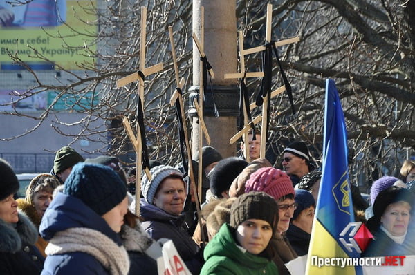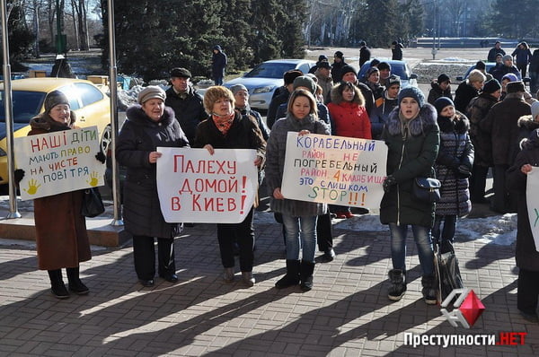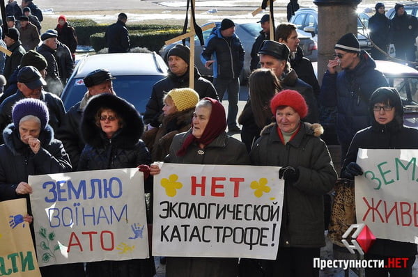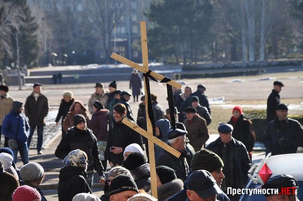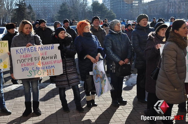 В четверг, 16 февраля, у входа в здание Николаевского городского совета проходил пикет горожан, которые выступают против строительства кладбища рядом с микрорайоном Кульбакино.