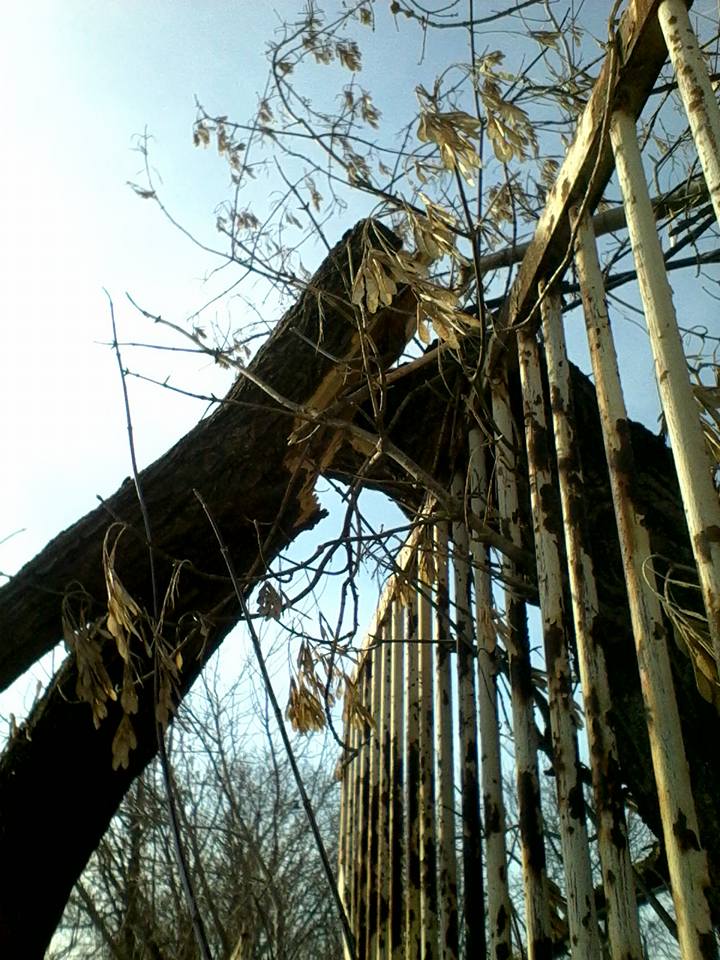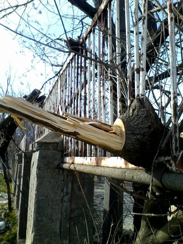 «На фото: Сломанный забор и спиленные деревья. Две женщины – местные жители возмущены сломанным забором», — отметил активист.