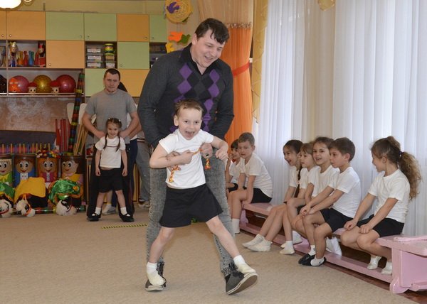 В патріотичному вихованні величезне значення має приклад дорослих. Тож враховуючи цей фактор, на свято був запрошений отаман громадської організації «Богоявленське козацтво» Параскун Сергій. Він поділився з дітьми цікавою розповіддю про славетних козаків, продемонстрував вправне володіння шаблею, провів цікаві конкурси з дорослими. Під час проведення забави з «Перетягування підкови» татусі показали свою спритність та силу, а матусі свою винахідливість в грі «Зніми шапку».