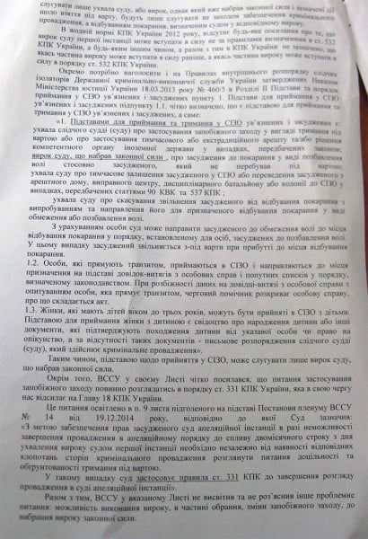 На прошлом заседании судьи отказались освободить подсудимого из под стражи, хотя мера пресечения истекла ещё 21 января, а новая не назначена. Т.е. правовых оснований находиться в СИЗО нет, а гражданин там удерживается. В связи с этим адвокат Н. Надич подала заявление о совершении уголовного преступления судьями. Заявление подано в Генеральную Прокуратуру и зарегистрировано.