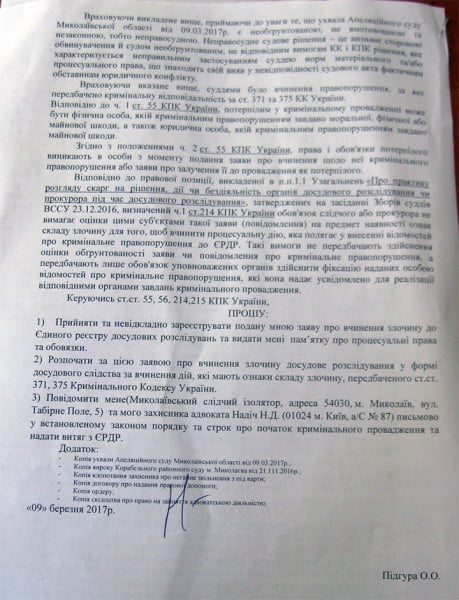 12.04.2017 судебная коллегия Николаевского апелляционного суда под председательством С. Войтовского, судей Е. Фарионовой и Н. Чебановой-Губаревой продолжила рассмотрение скандально известного дела по обвинению А. Пидгуры по статье 307 ч.2 УК Украины.