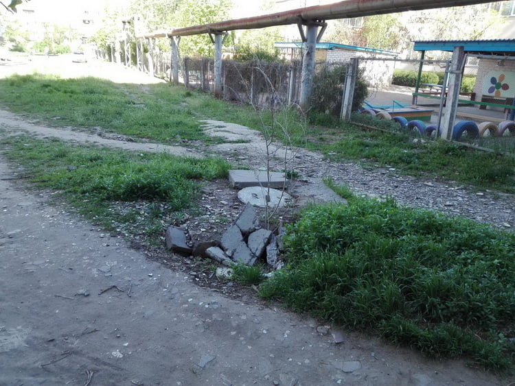 "Не хотим, чтобы случилась трагедия", - жители Корабельного об опасном люке на "ничейной территории" возле детсада