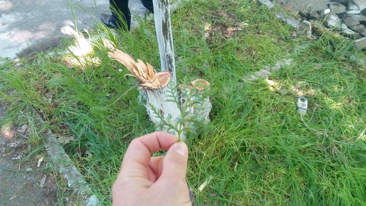 Зносились здорові дерева, про що свідчать зроблені фото, за вказівкою священника Богдана з церкви московського патріархату. Громадськість викликала поліцію. І тут почалось найцікавіше. Священик почав демонструвати представникам закону, але навідріз не давав фотографувати ксерокопію начебто акту на знесення дерев.