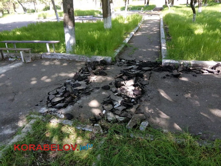 У парку біля Миколаївського міського Палацу культури «Корабельний», на території, де раніше було розташовано дитяче містечко «Світлофор», та де тепер планують побудувати новий храм Української православної церкви Московського патріархату, за вказівкою отця Богдана (служителя церкви, що на вул. Рильського) трощать асфальтові доріжки з розміткою, на яких колись вчились правилам дорожнього руху діти, катаючись тут на машинках та велосипедах.