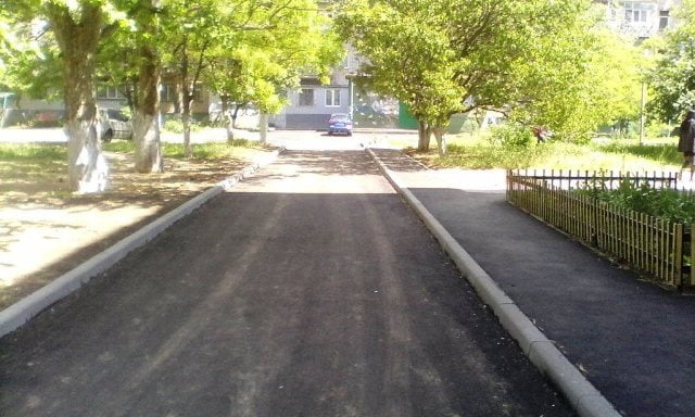 Кроме того, выполнены работы по капитальному ремонту внутриквартального проезда (площадь ремонтных работ — 1631 м2) и тротуара (площадь ремонтных работ — 410 м2) по пр. Корабелов, 10Б. Подрядная организация — ООО Гончаренко.
