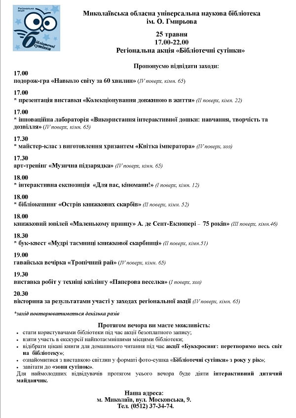 Адрес библиотеки: г. Николаев, ул. Московская, 9 тел. (0512) 37-34-74.