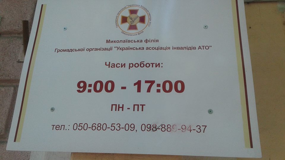 В ночь на 25 мая здание, где расположен офис Николаевского филиала ОО «Украинская ассоциация инвалидов АТО» забросали бутылками с зажигательной смесью.