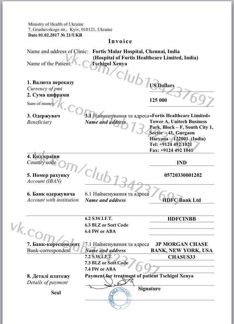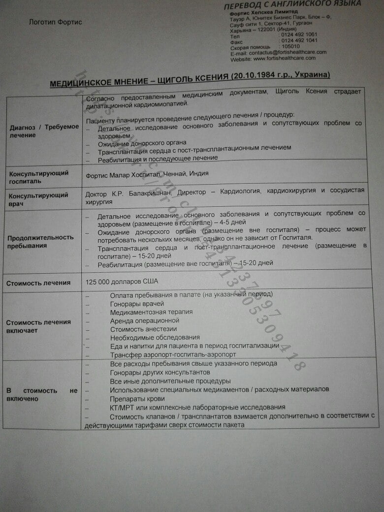 Я уже нахожусь в Индии, меня поставили в лист ожидания донорского органа (сердца). Выставлен счет в 125 000 долларов… Счет оплачивает МОЗ Украины.