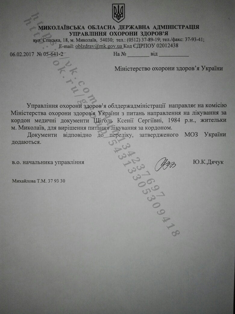 «Меня зовут Ксения Щиголь, мне 32 года, я из г. Николаева, Украина. Хочу рассказать вам свою историю, может вы смогли бы мне чем-то помочь. Все документы прилагаю!