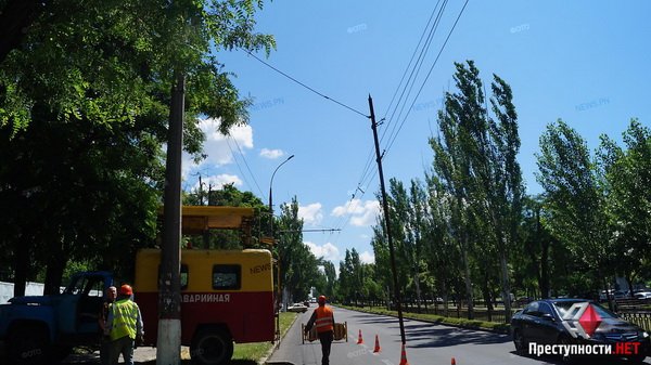 В пятницу, 16 июня, на проспекте Центральном в Николаеве силовая опора линии контактных сетей упала на проезжающую «маршрутку».