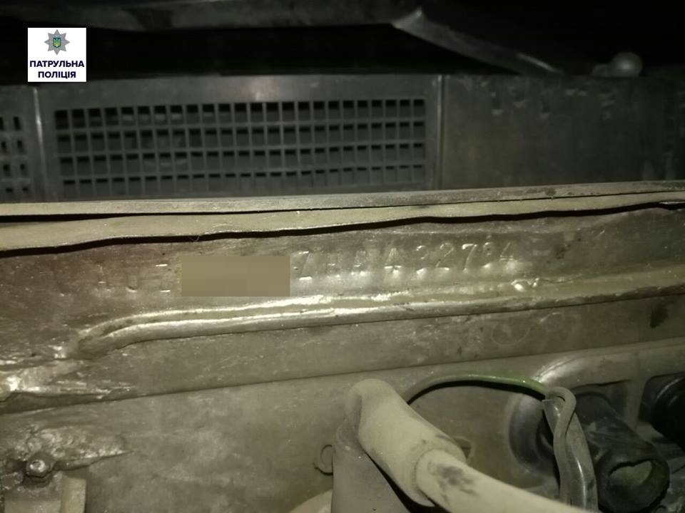 При перевірці VIN коду транспортного засобу охоронці порядку виявили, що його частину було змінено кустарним шляхом. Патрульні доставили водія до відділу поліції.